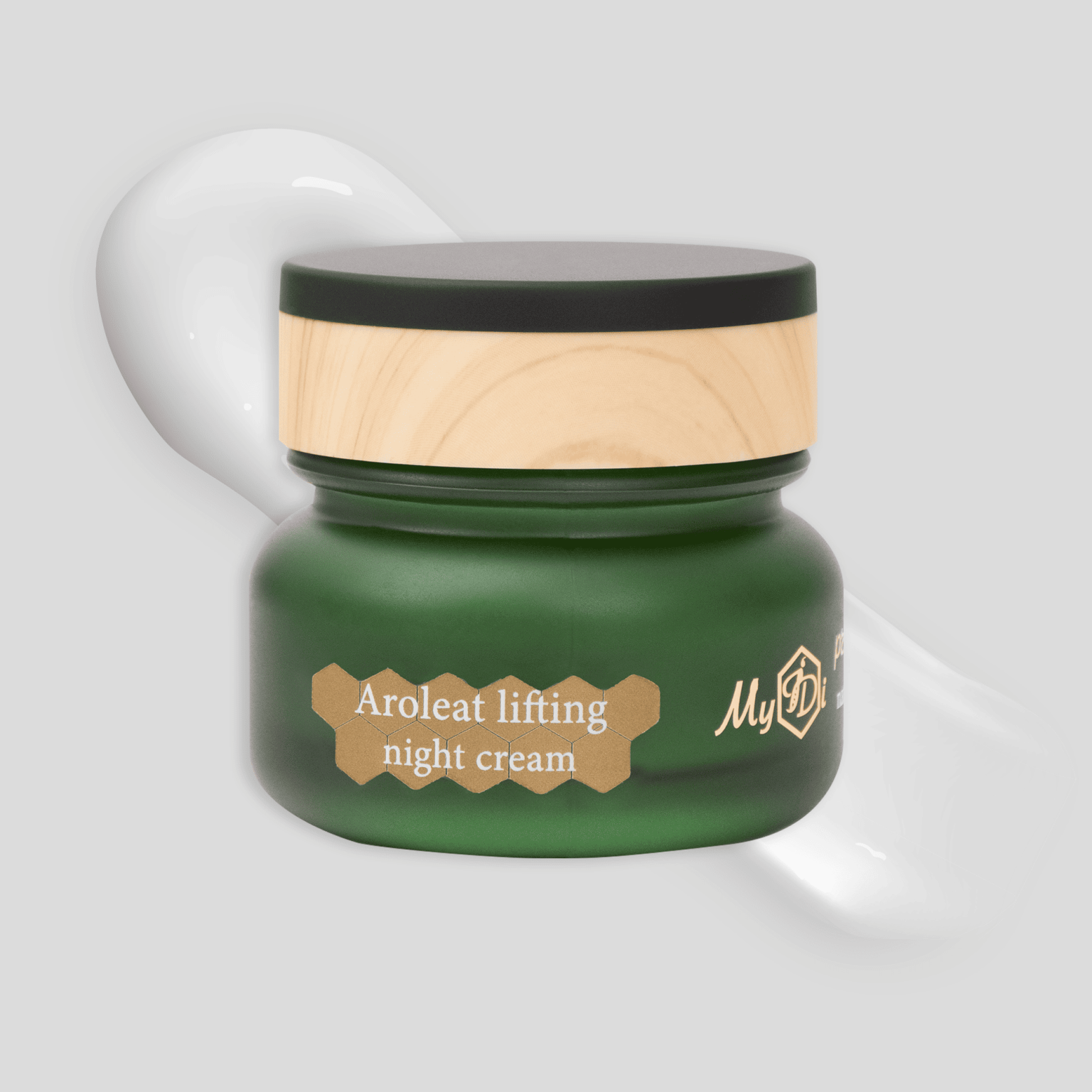 Age Guardian Aroleat Lifting night cream — це ефективний ліпосомальний нічний крем. Він відмінно бореться з в'ялістю, сухістю, зморшками і віковими змінами. Продукт підходить для всіх типів шкіри. Він має поживні, відновлювальні, регенеративні, зволожувальні та антивікові властивості. Засіб має виражений антивіковий і ліфтинг-ефект, надає шкірі пружності, а обличчю — чітких контурів. Формула містить різні активні компоненти, такі як кислоти, пептиди, ліпосоми та вітамін E.