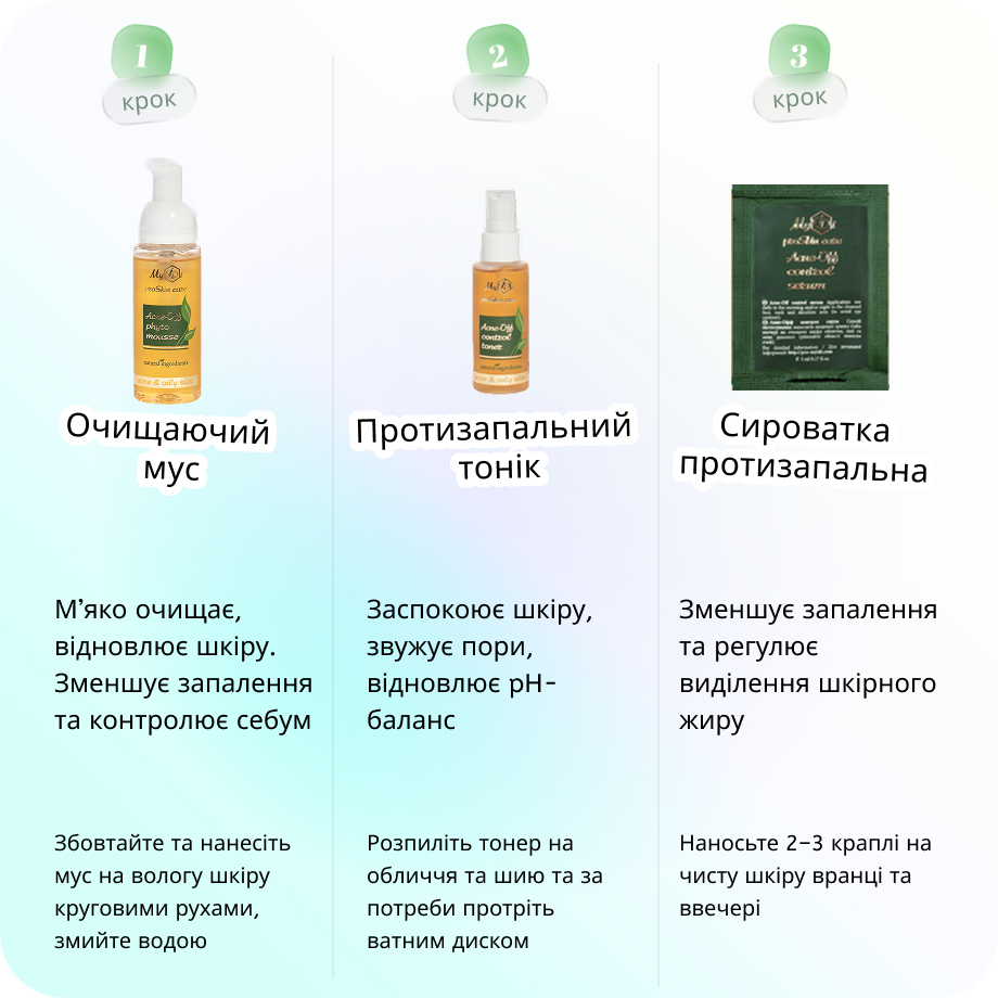 Набір Acne-OFF Mini Set являє собою спеціалізований комплекс засобів, спрямованих на боротьбу з різними запаленнями. Тут передбачені різні продукти для жирної шкіри, схильної до висипань та акне. Вони не тільки допомагають усунути видимі запалення, але й впливають на причини їх виникнення.
