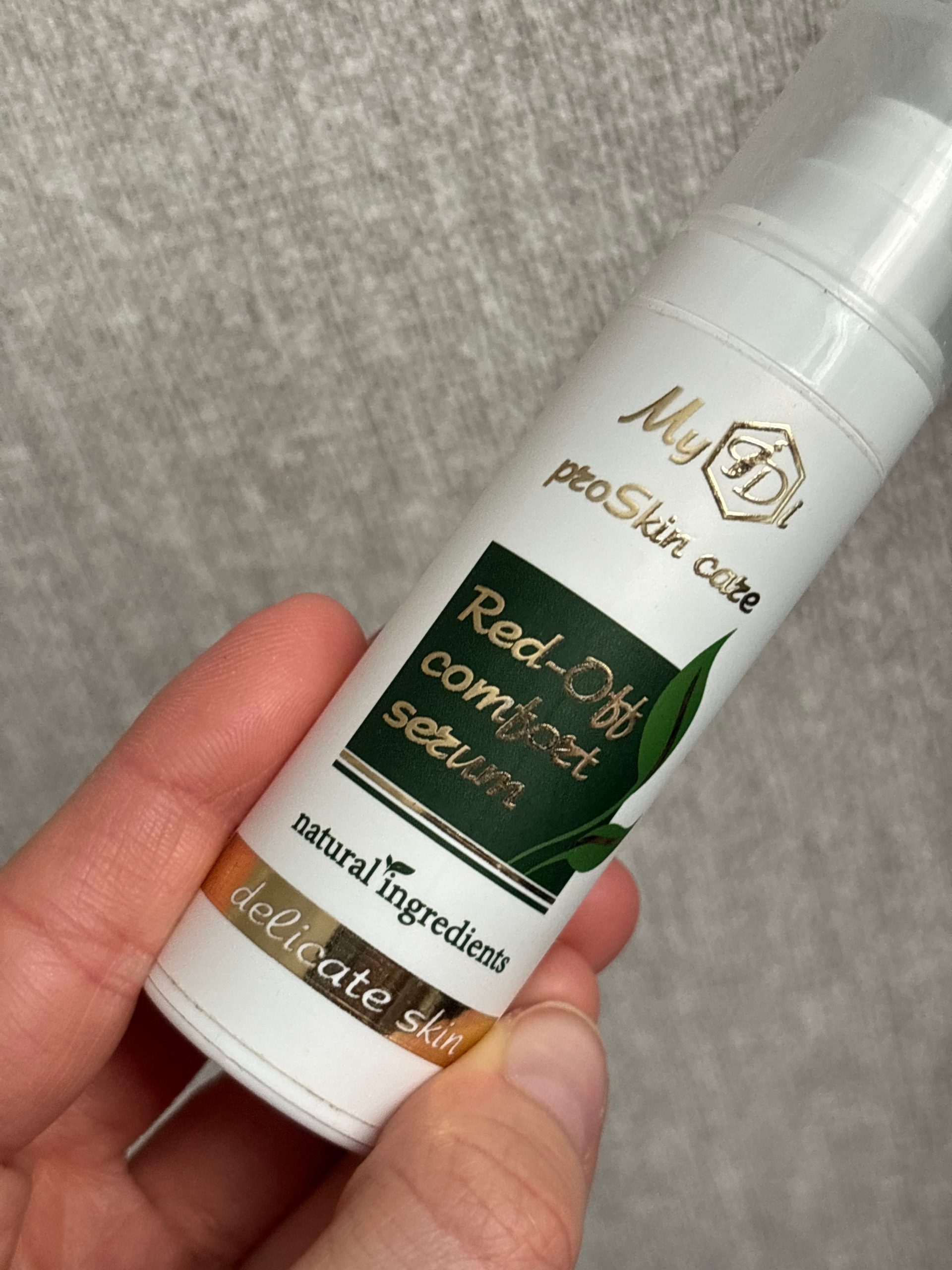 Red-Off comfort serum — це заспокійлива сироватка для обличчя. Вона ефективно вирішує безліч проблем: купероз, розацеа, почервоніння, а також в'ялість, сухість і лущення. Засіб призначений для власників чутливої шкіри. Потужна формула забезпечує комплексний вплив, який включає відновлення, живлення, зволоження і заспокоєння епідермісу. Сироватка також активізує процеси регенерації в шкірі та має протизапальну дію.